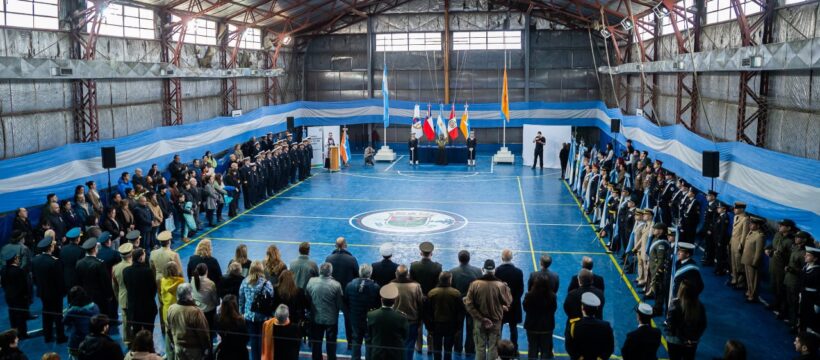 Ushuaia. -Participaron el Ministro Jefe de Gabinete, Agustín Tita junto a funcionarios y funcionarias del Ejecutivo Provincial, autoridades del orden provincial y local, autoridades judiciales, veteranos de guerra, fuerzas armadas y de seguridad, diplomáticos, representantes de diversas organizaciones y asociaciones de la sociedad civil, así como banderas de ceremonia de instituciones educativas.