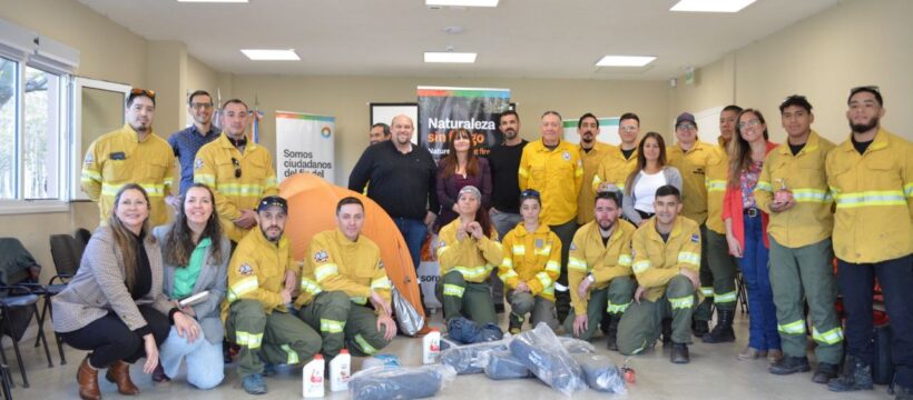 Brigadistas recibieron bolsas de dormir, carpas, calentadores portátiles y lubricantes para las motosierras y motobombas. El acto estuvo encabezado por la Ministra de Producción y Ambiente, Karina Fernández, junto a la secretaria de Ambiente, Andrea Bianchi y se desarrolló en la sede del INFUETUR de Ushuaia.