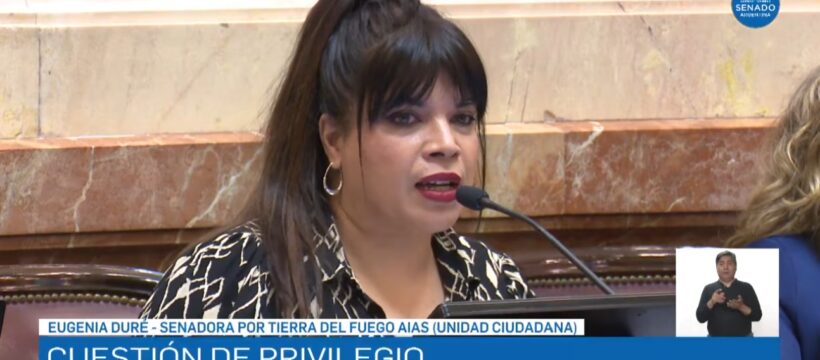 La senadora nacional por Tierra del Fuego, Eugenia Duré (Unión por la Patria), presentó este jueves una cuestión de privilegio en el Senado de la Nación contra el presidente Javier Milei y sus ministros, luego de que el Poder Ejecutivo dictara el Decreto de Necesidad y Urgencia 697/2025, mediante el cual se autoriza el ingreso de tropas de Estados Unidos para realizar ejercicios militares en el territorio argentino, particularmente en la ciudad de Ushuaia, Mar del Plata y la Base Naval de Puerto Belgrano.