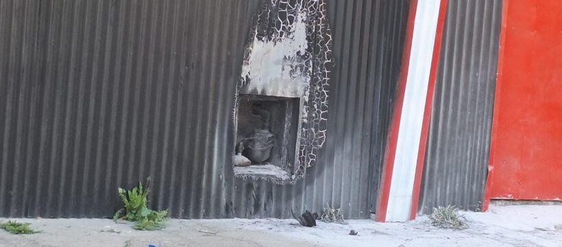 Posteriormente, personal de Bomberos verificó el lugar, interviniendo el perito bomberil, quien tras realizar la inspección determinó que el hecho fue intencional, iniciado en el nicho de gas ubicado en el exterior del establecimiento.