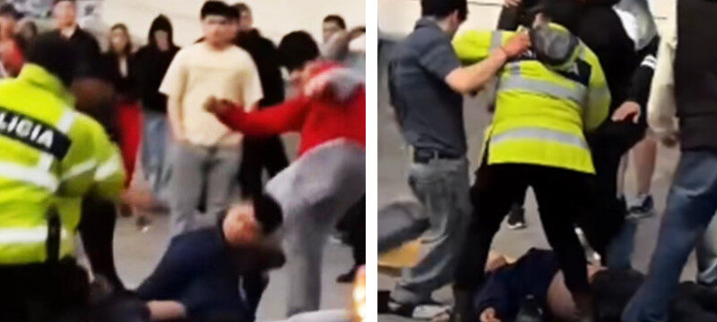 Un video difundido y viralizado en redes sociales, permite ver la gravedad de la situación. Un importante grupo de jóvenes, trenzados a patadas y puños, y efectivos policiales desbordados ante los hechos, mientras otro joven permanecía en el suelo. Según el parte oficial, se registraron 3 personas detenidas, y un herido. Luego, se dio intervención al Ministerio Público Fiscal.