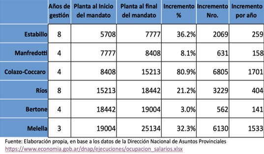 Según detalló, desde la “provincialización en 1992 hasta la actualidad, la planta estatal creció un 340%, pasando de poco más de 5.600 agentes a más de 25 mil, en el mismo período, el crecimiento demográfico fue del 154%”.