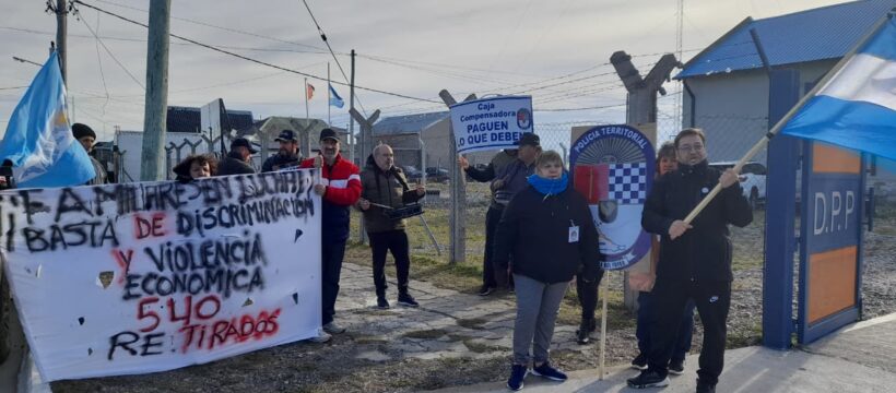 Un grupo de policías retirados del Ex Territorio, junto con familiares, se presentó en el lugar donde se desarrolló el acto de lanzamiento de Terra Ignis Energía S.A. y la presentación del acuerdo operativo con Velitec S.A., donde ellos esperaban la presencia del gobernador Gustavo Melella. Finalmente, el mandatario no llegó y no pudieron expresarle su reclamo por los casi 11 meses de deuda, a raíz de la falta de pago de parte de sus haberes. Igualmente advirtieron que estarán “donde tengamos la posibilidad de hacernos ver y manifestarnos, para que vean las autoridades políticas que nosotros seguimos reclamando por una causa justa”.
