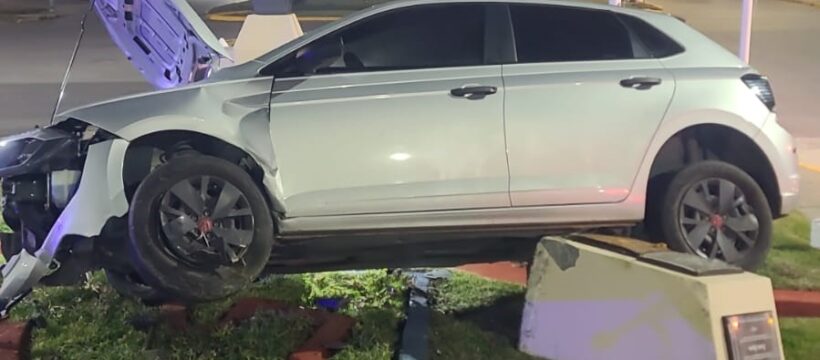 Río Grande. – Personal policial intervino en la intersección de avenida Belgrano y Elcano tras el despiste de un Volkswagen Polo Track gris que terminó sobre el boulevard.