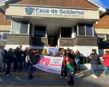 Profesionales de la administración pública protestaron en Ushuaia ante lo que entienden es el «ninguneo» del Gobierno de la provincia. Se trata de integrantes de ASPUE-EPU, quienes se manifestaron esta semana en las puertas de Casa de Gobierno en Ushuaia, donde denunciaron que les prohibieron el ingreso al edificio. Los profesionales reclamaron ser convocados a paritarias, tras meses de gestiones sin respuesta alguna. Río Grande – El clima de malestar que se vive en el sector de los profesionales universitarios de la administración pública provincial escaló este martes con una ruidosa protesta en las puertas de la Casa de Gobierno. En ese lugar, los trabajadores nucleados en la Asociación de Profesionales Universitarios del Estado (ASPUE) y la agrupación EPU se
