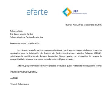 AFARTE y la UIF, con el acompañamiento de varias empresas; presentaron una nota a la Secretaría de Industria de Nación, donde se impulsa bajar el porcentaje de componentes de los que deben ensamblarse en la provincia para los teléfonos celulares. El resultado, sería que podrían caer alrededor del 50% de los puestos de trabajo ocupados en la actualidad. Empresas y el Gobierno nacional estarían de acuerdo con esta iniciativa. Río Grande – Las cámaras empresariales y las distintas empresas radicadas en la provincia, impulsan una propuesta de modificación del proceso productivo de celulares que la Secretaría de Industria de Nación, mediante una nota conjunta presentada al Ing. Javier Ignacio Cardini, titular de la Subsecretaría de Gestión Productiva. El escrito, lleva